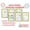 Každá karta je zaměřena na jednu oblast, která souvisí s jarem: Květiny v lese, květiny na zahradě, mláďata na statku, mláďata v lese, vývoj žáby, vývoj motýla a slunéčka, jarní svátky, ptáci, jarní počasí, zahrádka, život v trávě, včela, kvetoucí stromy a keře, jarní činnosti.