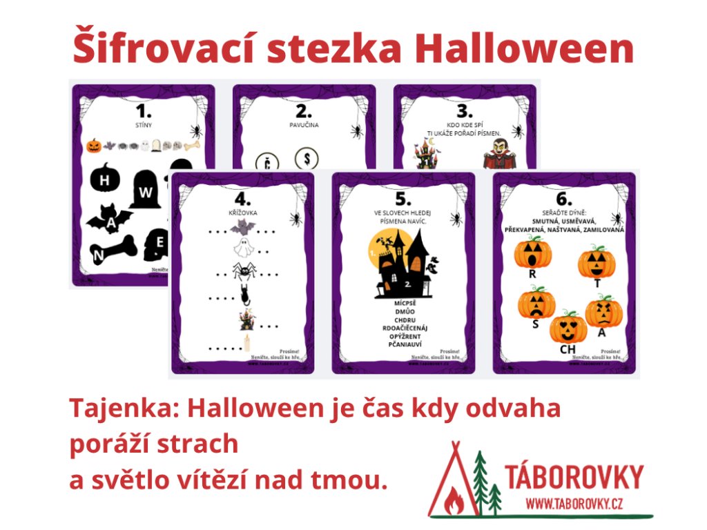 Strašidelná šifrovací stezka se hodí pro úplné šifrovací začátečníky, neobsahuje šifry, které není třeba dopředu s dětmi trénovat vhodné pro děti od 3. třídy víš (baví i dospěláky).