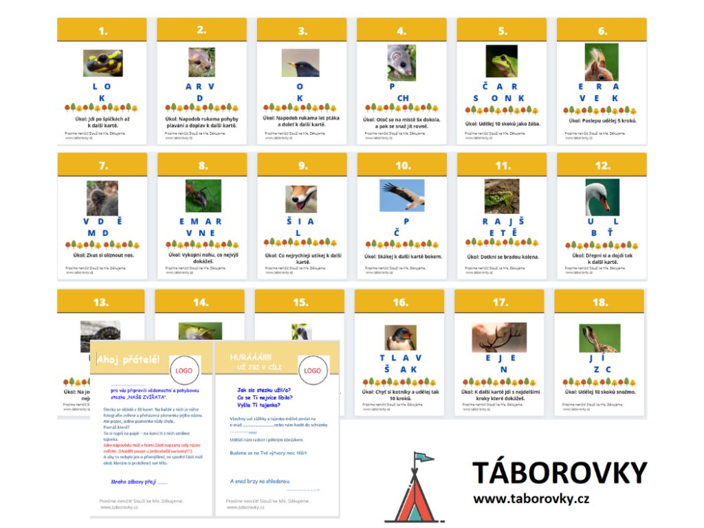 - Stezka obsahuje 18 karet - ty se skládají z luštící části a pohybového úkolu.