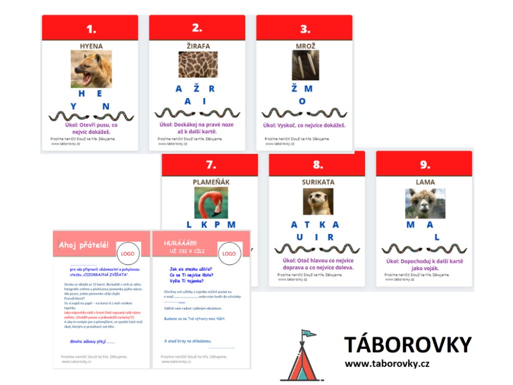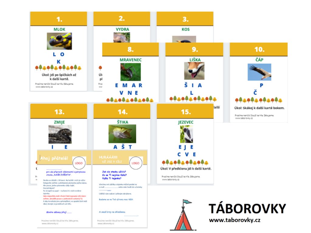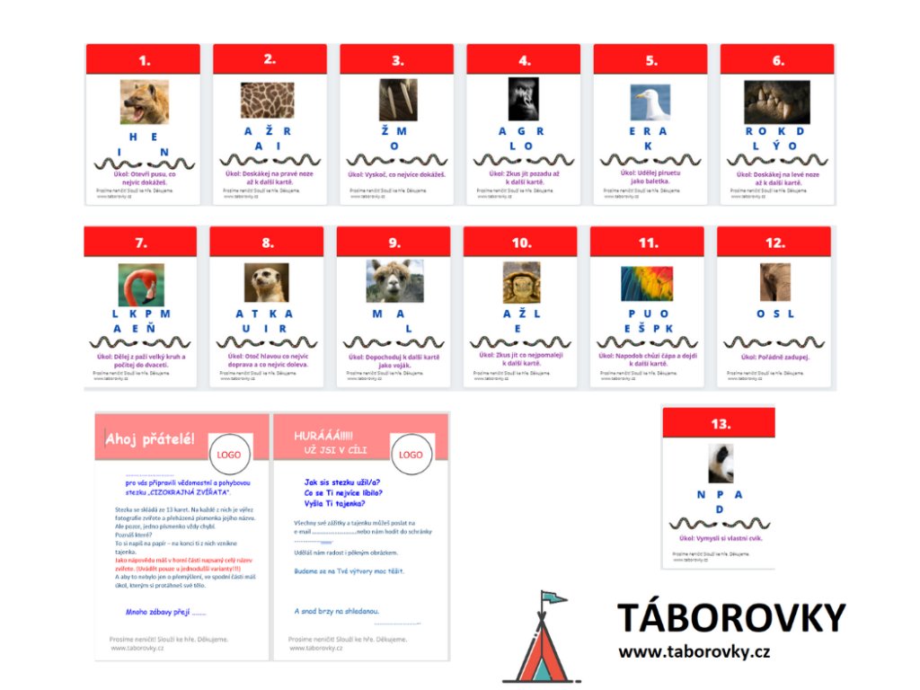 - Stezka obsahuje 13 karet - ty se skládají z luštící části a pohybového úkolu.