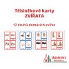 Zvířata domácí: (12 karet textu + obrázek, 12 karet obrázek) - prase, králík, husa, kachna, slepice, kráva, pes, kočka, kůň, kozel, beran, osel.