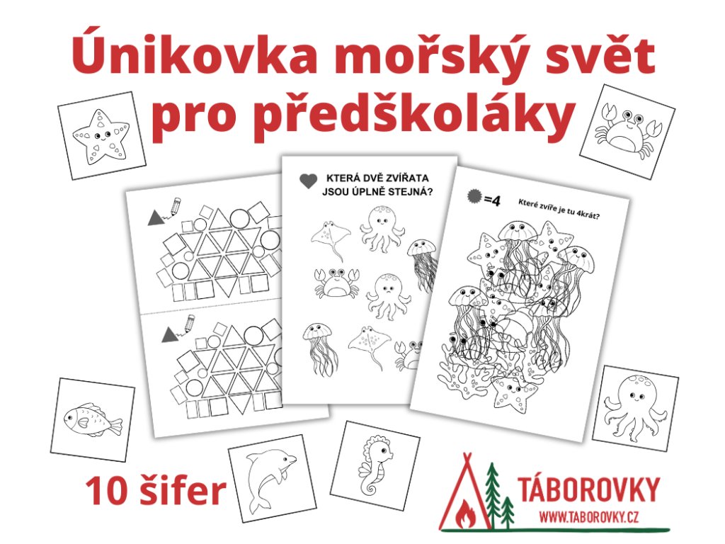 Tato únikovka mořská zvířata je vhodná pro předškoláky a nebo prvňáčky na začátku školního roku.